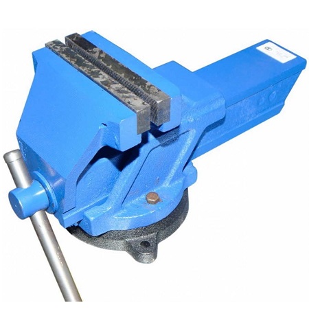 Тиски слесарные поворотные 0°-360° с наковальней. Материал: чугун СЧ20 (серый чугун) ГОСТ 1412-85. Губки сменные 150 мм. Ход 110мм. Зажим 3000кгс. Вес: 18,7 кг. Габариты: 385х180х200 мм. Сделано в Белоруссии.