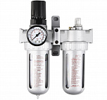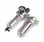 Регулятор давления воздуха с лубрикатором, влагоотделителем и манометром 1/4”. Пропускная способность – 1500л/мин. Давление компрессора 0-10Бар. Снижает давление между компрессором и пневмоинструментом.