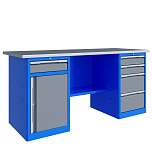 Двухтумбовый. Допустимая нагрузка на столешницу 1000 кг. Опорные элементы выполнены сварными из холоднокатаной стали. Для выполнения сборочных, ремонтных, слесарных, монтажных и других видов работ на производстве, в сервисных центрах, мастерских, гаражах, а также для обучения технологии в учебных заведениях. Комплектуется полкой-стенкой, расположенной под столешницей для удобного размещения габаритного инструмента и оснастки. Размеры верстака: 855x1796x696 мм. Вес: 133 кг. Поставляется в 4 комплектациях на выбор.