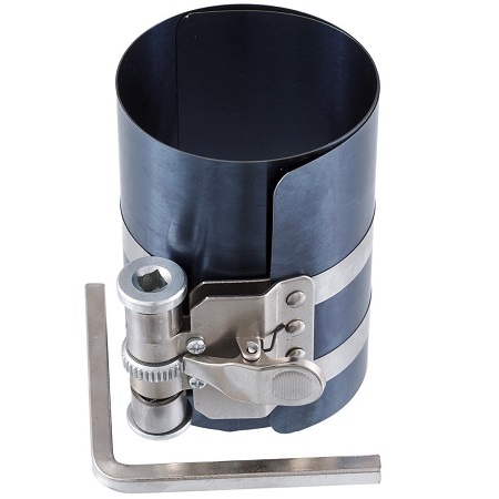 Для ценителей Европейского качества. Оправка для поршневых колец, высота 75 мм, рабочий диапазон 53-175 мм. Вес: 0,3 кг. Применяется для облегчения установки поршня в цилиндр, что обеспечивает равномерное сжатие поршневых колец.