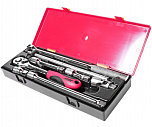 Набор удлинителей в прочном презентабельном боксе 8 предметов. В комплекте: удлинитель под ключ 1/2: 2, 3, 5, 10 - 4шт; переходник карданный 1/2 - 1 шт; вороток с шарниром 1/2, 15 - 1 шт; вороток с плавающей головкой 1/2, 12 - 1 шт и трещотка 1/2 - 1 шт.