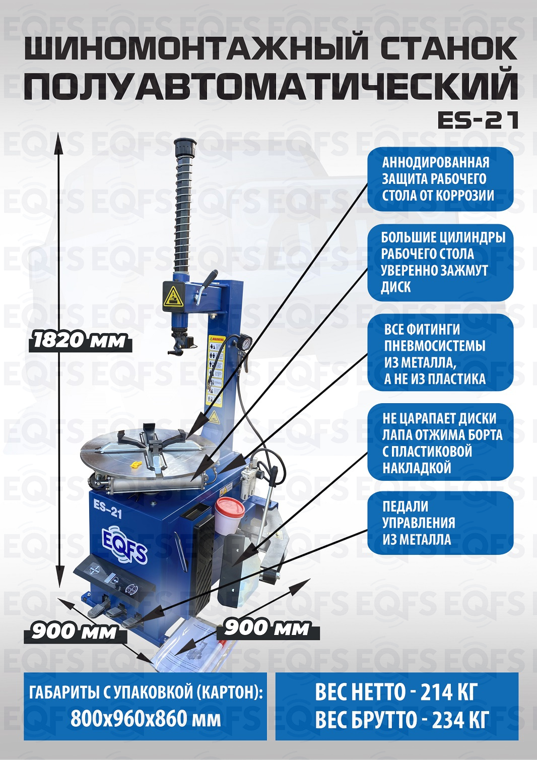 Особенности конструкции ES-21 полуавтоматического шиномонтажного станка: