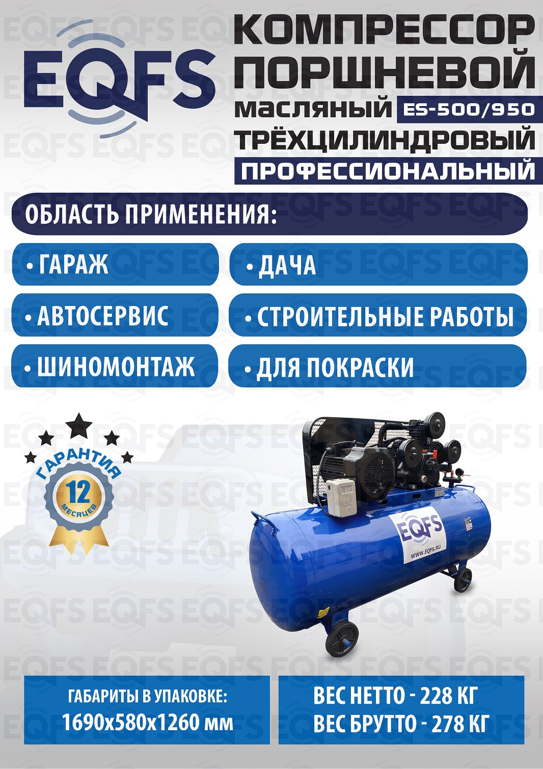 Технические особенности компрессор поршневой ES-500/950: