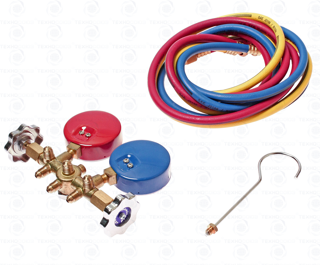 • Манометрический коллектор для хладагента R-12, оснащенный 3-мя цветными шлангами длиной 150 см.