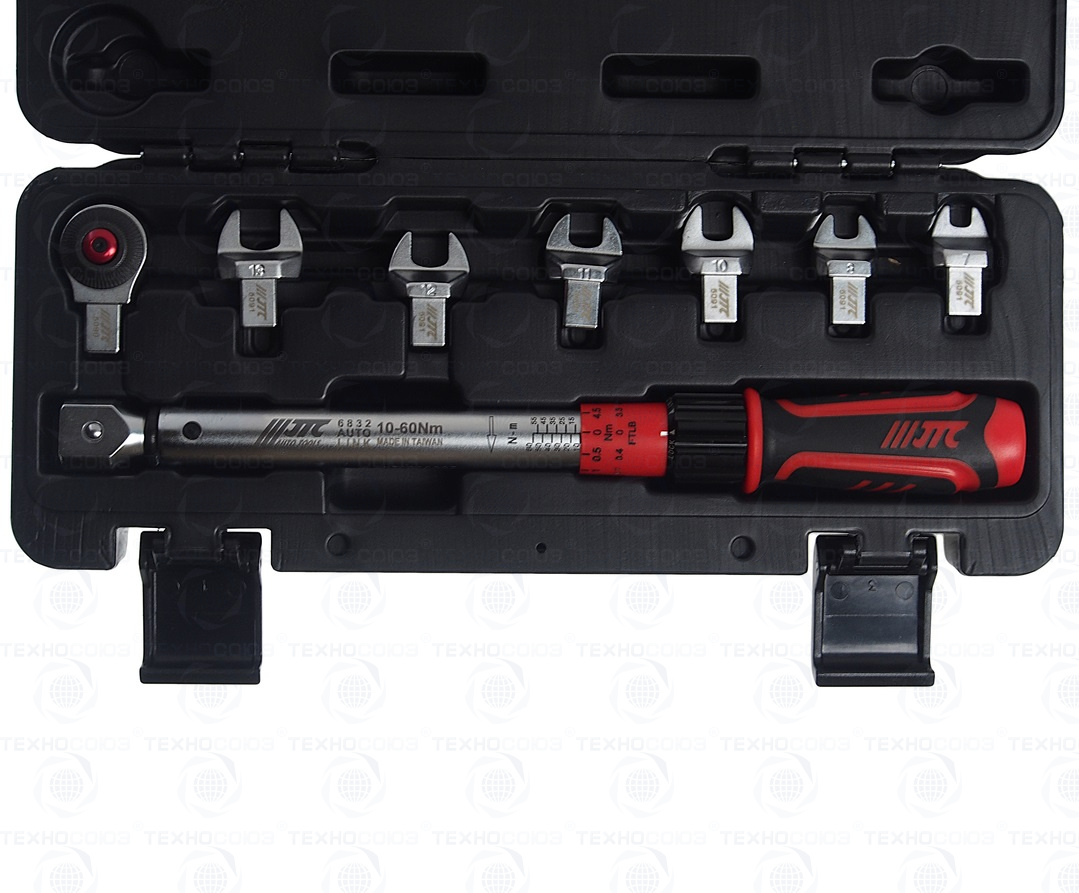 КЛЮЧ ДИНАМОМЕТРИЧЕСКИЙ 10-60НМ 9-12ММ С НАСАДКАМИ 7-13ММ 8 ПРЕДМЕТОВ JTC-6832K
