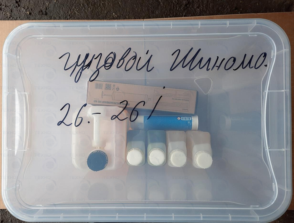 Комплект для ТО грузового шиномонтажного станка включает: Противоизносное бесцинковое гидравлическое масло в гидростанцию. Емкость 7л. + Смазка пластичная для цепи,400гр. С высокими эксплуатационными показателями на основе литиево-кальциевого мыла с содержанием противозадирных присадок (EP-присадок) и твердого наполнителя (дисульфида молибдена). Для смазывания узлов трения в грузовых шиномонтажных станках (направляющие + тавотница) + Масло в редуктор Емкость: 2 л. Трансмиссионное масло для применения в узлах трансмиссии, подверженных высоким нагрузкам (главная передача, ведущие мосты), где требуется уровень эксплуатационных свойств API GL-5. Масла эффективно защищают детали гипоидных передач от износа и задира + шприц для масла пневматический. Объем бака – 0,5л.