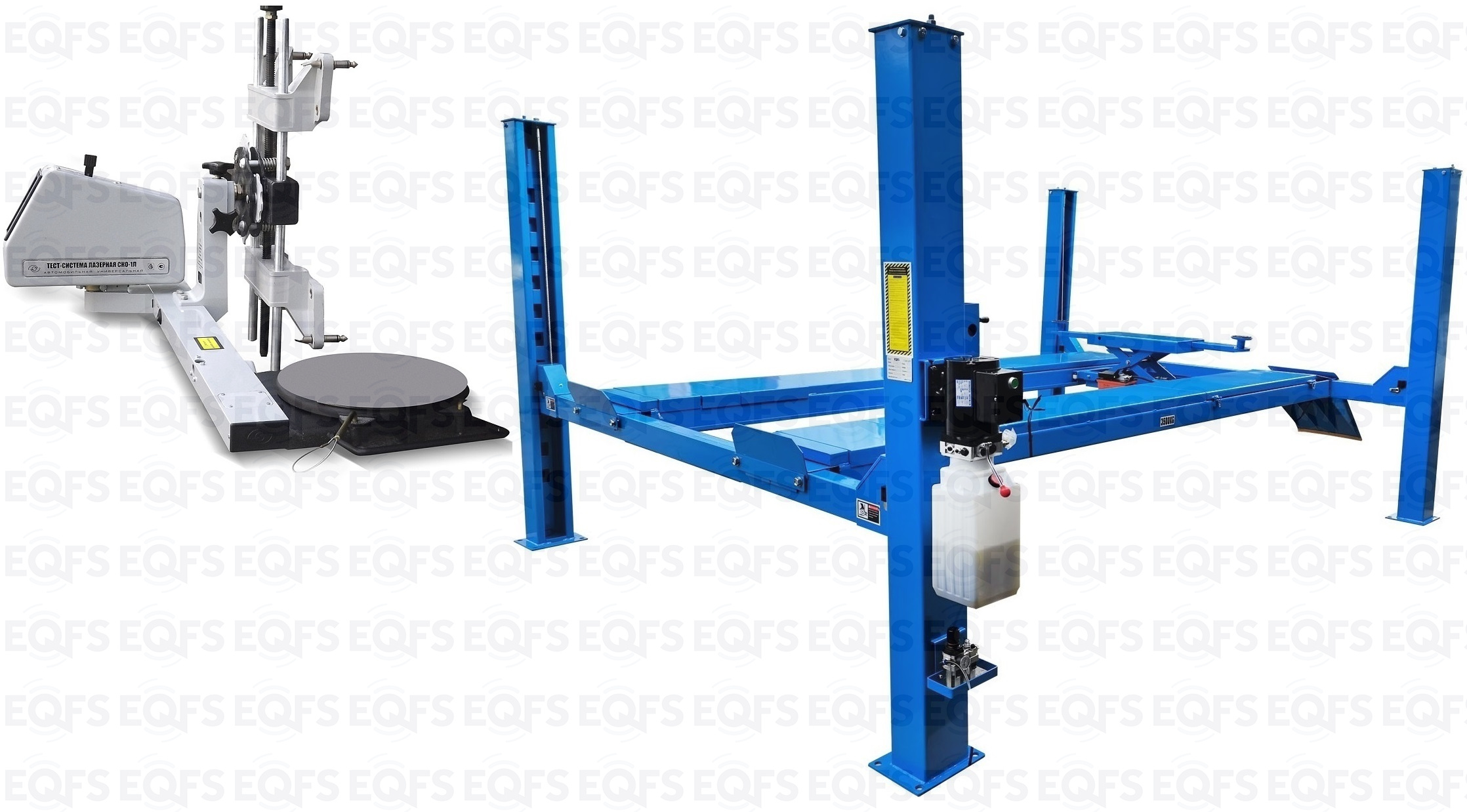 Комплект четырехстоечный подъемник г/п.-4т. с ручной траверсой. Гарантия 2года. В комплекте: анкерные болты 16шт. + противооткатные ограничители 2шт. + противооткатные упоры 2шт. Для любых стендов сход-развал - 3D, лазерных, инфракрасных, кордовых. ВАЖНО!!! ДЛИНА ПЛАТФОРМЫ - 4130мм. — это позволяет прокатывать авто на подъёмнике. Многие стенды развала требуют прокатки!!! Подъём 1850мм. Между колоннами 2775 мм. Усиленный — 960кг металла. + Стенд сход развала лазерный СКО-1Л. Стенд сход-развал лазерный БЕСПРОВОДНОЙ,  для контроля параметров установки колес легковых автомобилей, внедорожников и легких грузовиков(включая Газель) с диаметром обода колеса 12”-20”. Подходит для авто с низким расположением бампера.
