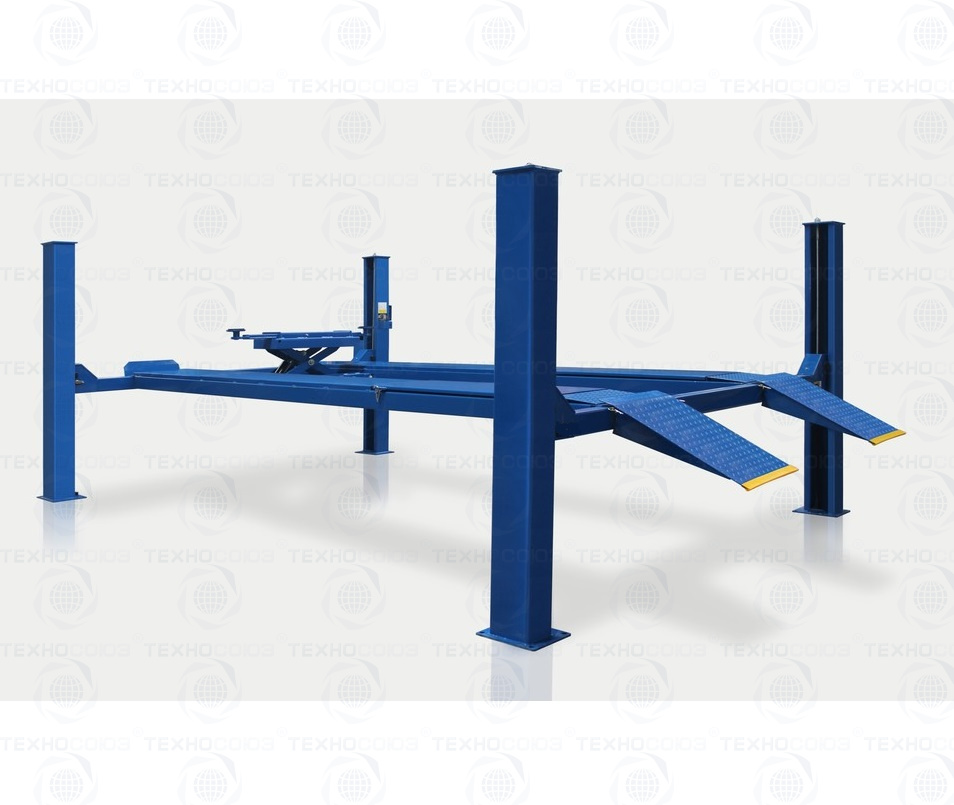 Автомобильный электрогидравлический четырехстоечный подъемник грузоподъемность 5.5т.