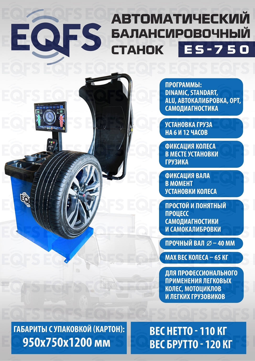 ES-750 Балансировочный станок. Автомат. Для широких колес 315 х R21 от BMW, MB, RANGE ROVER и т.д. Ввод 3-х параметров ( диаметра диска, дистанции и ширины диска), 19-дюймовый LCD монитор с высококачественной 3D-графикой, ультразвуковой датчик ширины. Автодоводчик и лазерная указка места установки грузика. Статическая и динамическая балансировка, ALU-программы для алюминиевых дисков. Программа OPT. Программа разделения и скрытой установки грузиков за спицами SPLIT. Режимы калибровки и самодиагностики. Для балансировки колёс с диаметром колеса до 800 мм. Размеры диска: ширина 3–10” (76-254 мм) , диаметр диска 10–24” (254÷609 мм). Прочный вал Ø - 40мм. Вес колеса 65 кг.