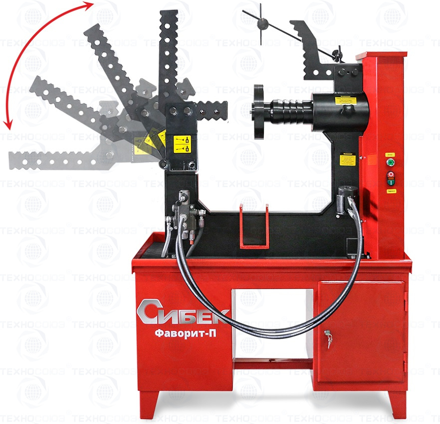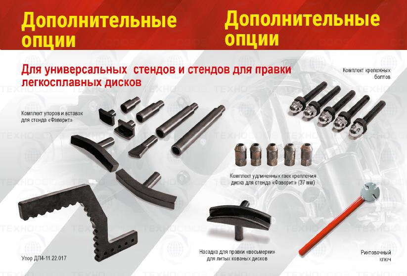 Ремонтируемый диск закрепляется на планшайбе, группа пазов которой позволяет зафиксировать любой диск вышеуказанного размера. Гидравлический привод стенда "Фаворит-П" позволяет достигать максимального усилия в зоне правки до 3700 кг, что, в большинстве случаев, позволяет полностью восстановить геометрию ремонтируемого диска. Комплектуется сменными рихтующими насадками и рабочими штоками.