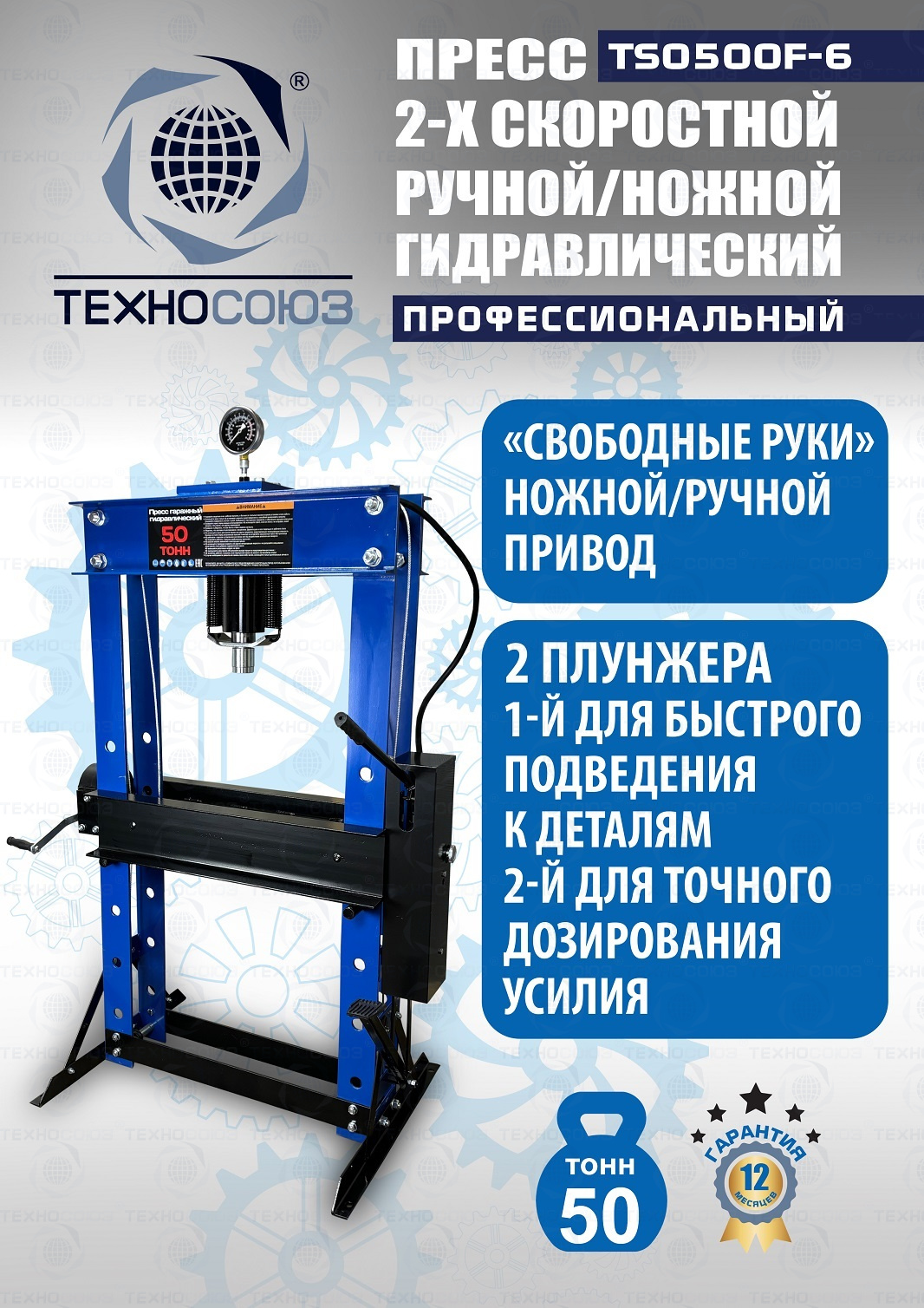 TS0500F-6 Пресс гидравлический ручной/ножной, 50 тонн