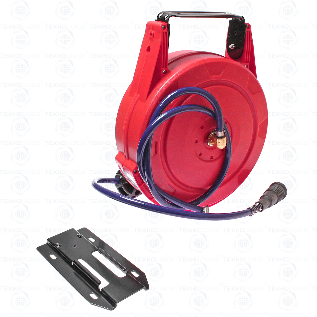 Полиуретановый шланг, рассчитанный на давление до 300 psi. Корпус из АБС-пластика, ударопрочный. Легкая установка (для крепления корпуса катушки понадобится только отвертка). Направляющая катушка поворачивается на 180 градусов, что значительно расширяет площадь работ. Может быть зафиксирована под углом 45, 90, 135 градусов. Длина шланга 10 м. Диаметр шланга: 8 мм, наружный диаметр: 12 мм. Габаритные размеры: 390/320/200 мм. (Д/Ш/В) Вес: 5537 гр.